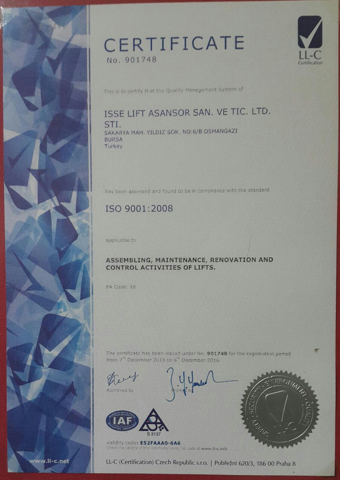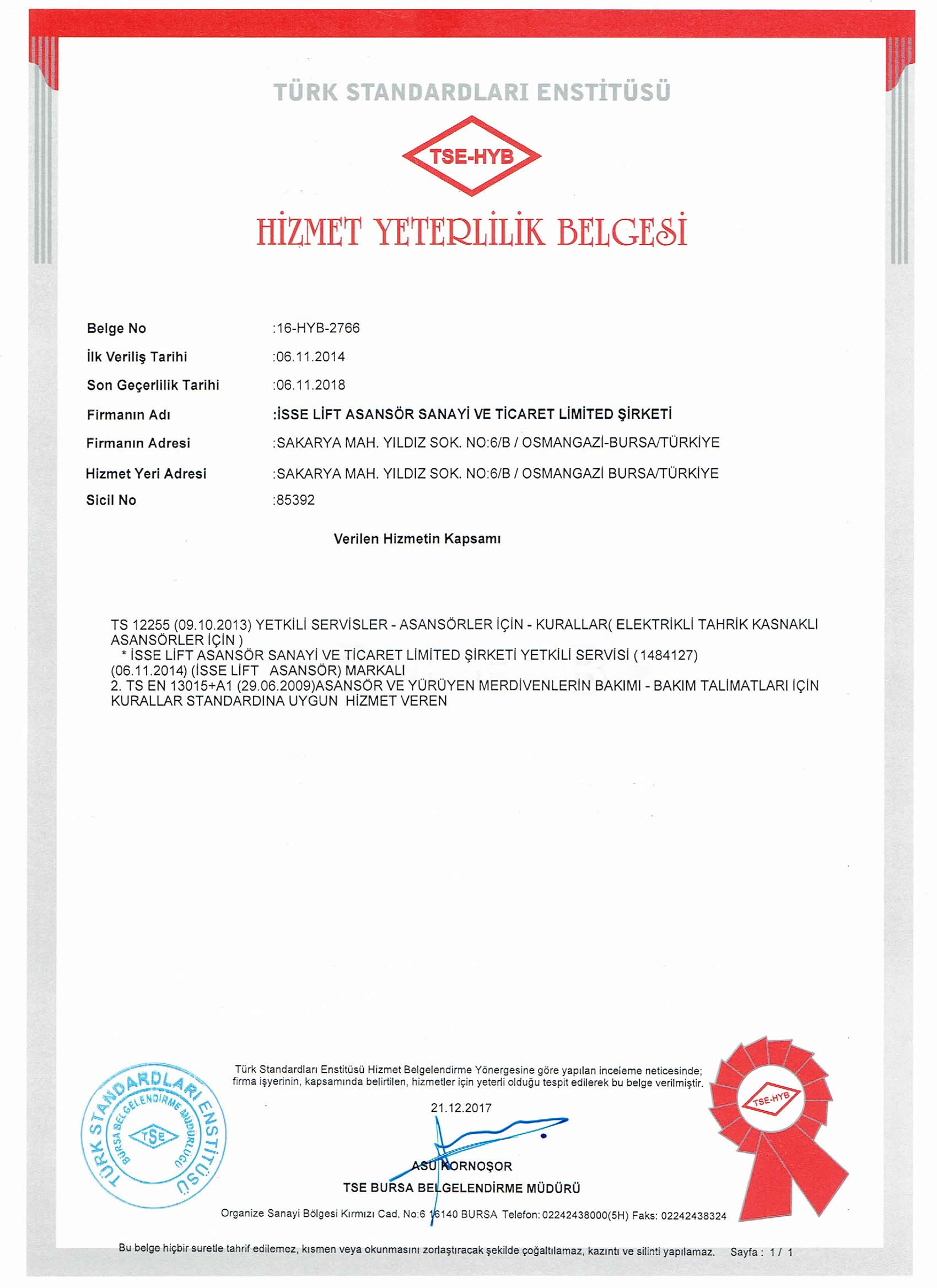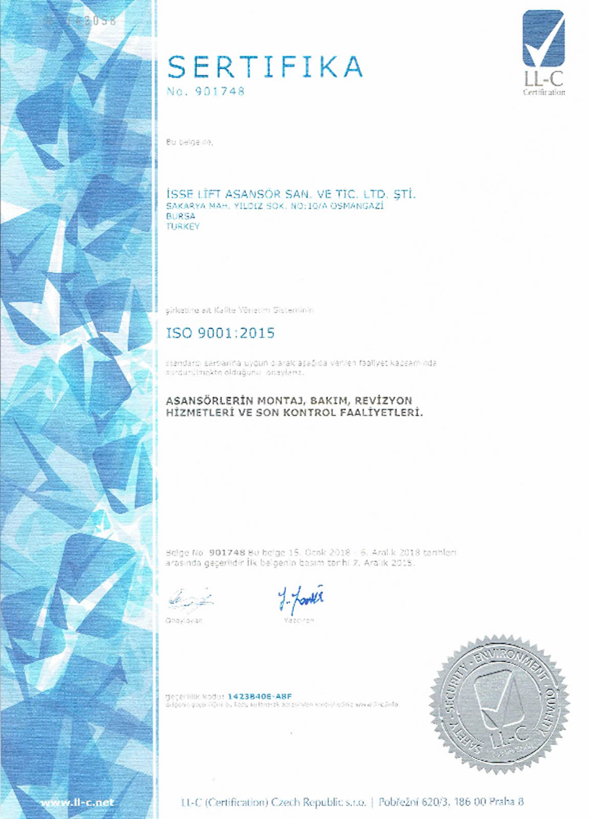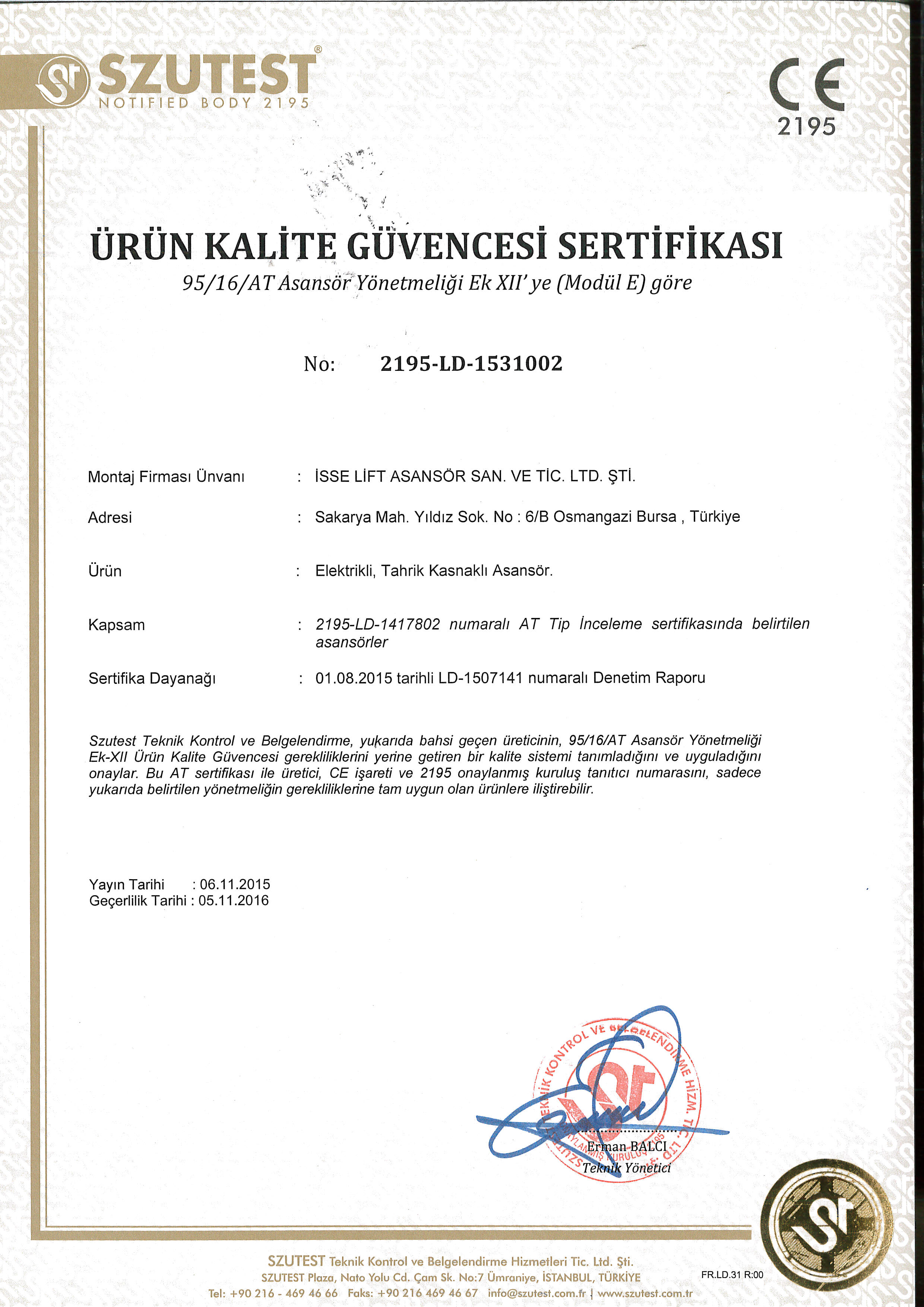 KALİTE BELGESİ